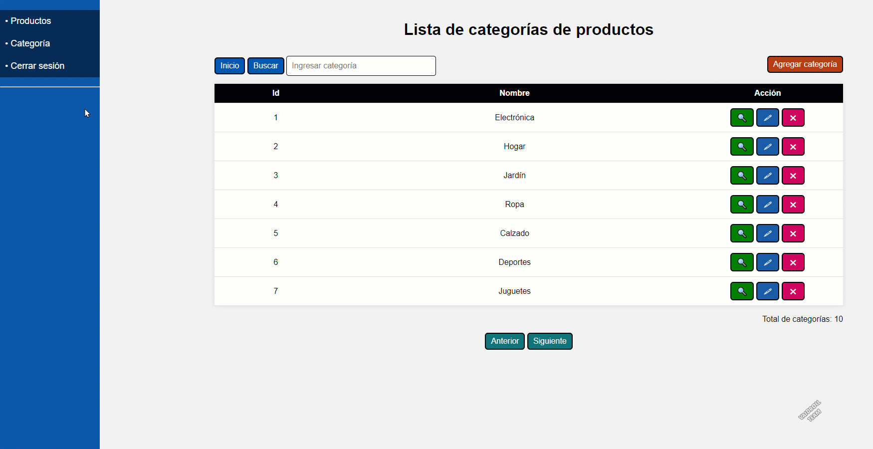 - La página CRUD de categoría es muy similar a la página CRUD de productos, pero la diferencia es que todo el cambio que se realiza en el CRUD de categorías se verá reflejado en la columna categoría del CRUD de productos.